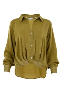 Satijnen Blouse met Knoopdetail – Faded Bleu Voeg een vleugje elegantie toe aan je garderobe met deze prachtige satijnlook blouse in een verfijnde licht blauw tint. De subtiele glans van de stof geeft een luxe uitstraling, terwijl het geplooide knoopdetail aan de voorkant zorgt voor een speels en flatterend effect. De blouse heeft een klassieke kraag en witte knopen die een stijlvol contrast vormen met de rijke kleur. Dankzij de losse pasvorm en soepelvallende stof is deze blouse niet alleen stijlvol, maar ook heerlijk comfortabel om te dragen. Perfect voor zowel zakelijke looks als een avondje uit.